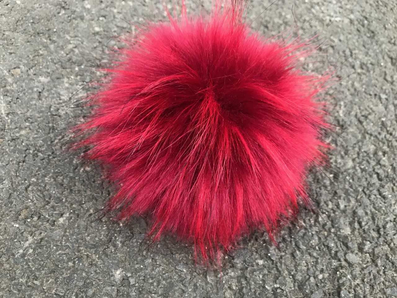 Raccoon Fluffy Pompom 14cm Red