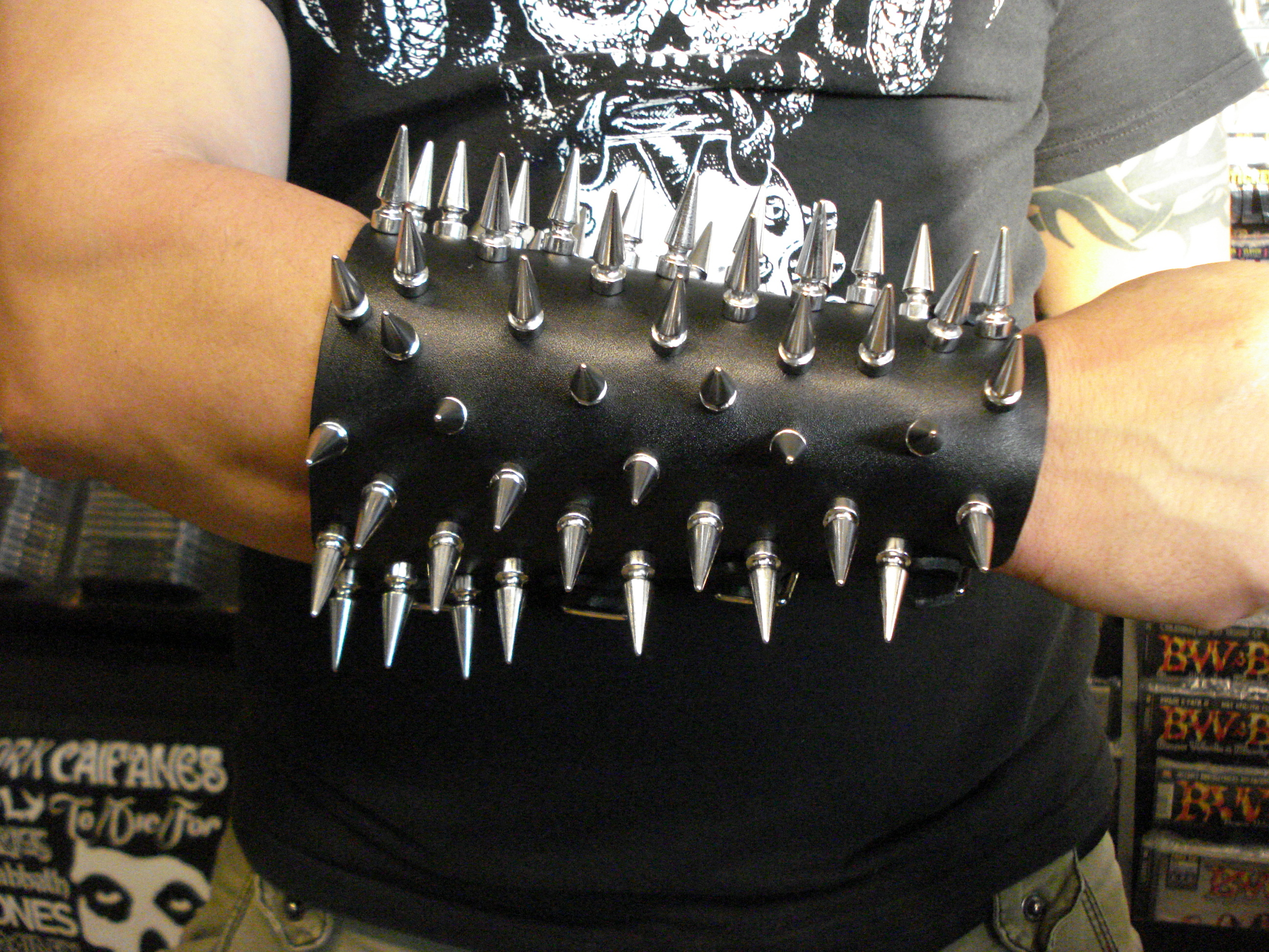 BURN VICTIM LEATHER LONG SPIKED BRACELET U.S.A (MDLB0213)