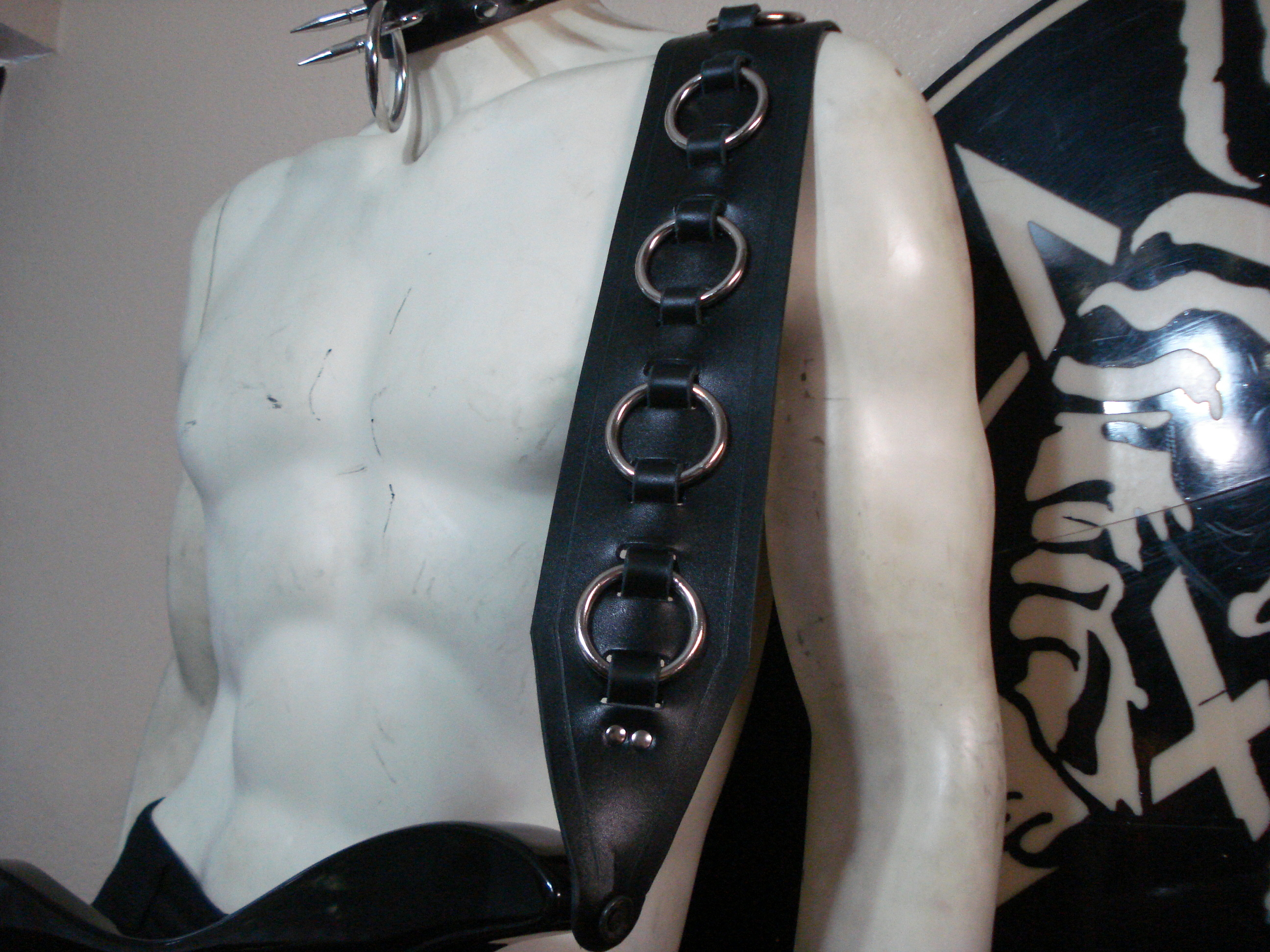 BILL STEER… LEATHER SPIKED & RINGGED GUITAR STRAP U.K (MDLS0322)